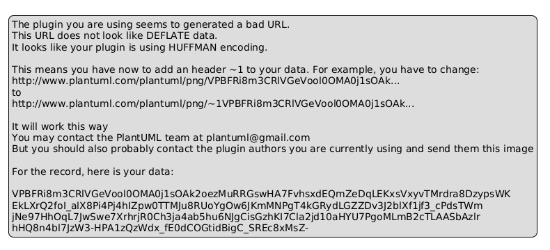 | persia | The URL itself is another API, although I haven't found documentation for it: it compresses the plantUML text into the querystring, so that the plantUML server can generate it on demand. | 14:55 |