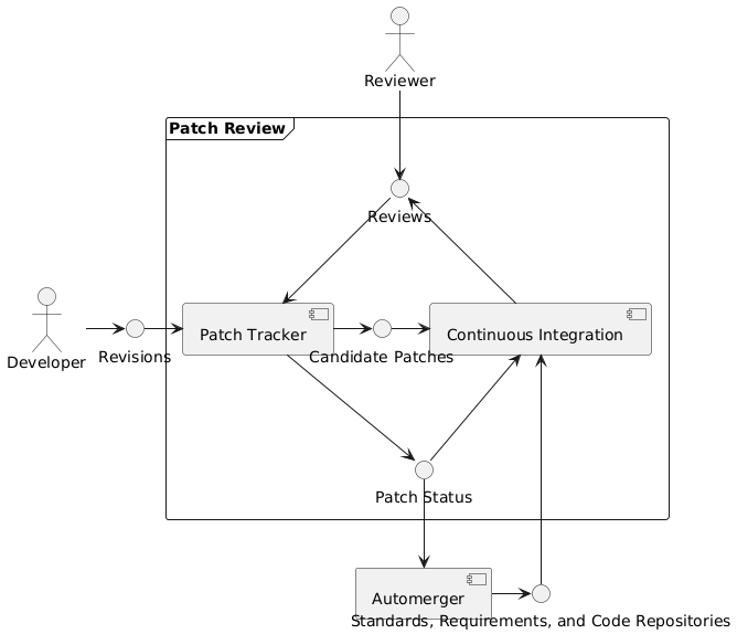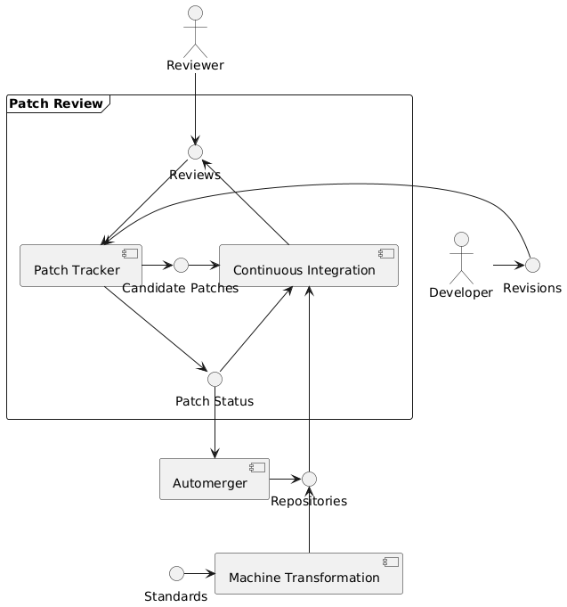 | ChrisPolin | So, patch review needs an input in the form of a revision of some description, and the standards as a constraint. | 11:27 |