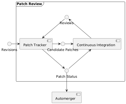 | ChrisPolin | Yes, that's my definition of it too. In which case, are you separating 'Patch tracker' from 'Patch Review'? | 12:10 |