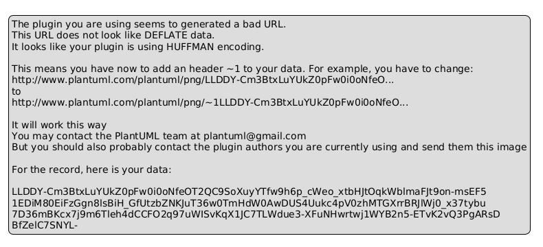 | ChrisPolin | http://www.plantuml.com/plantuml/png/LLF1YkCm3BtxAqHFNPYP3oZBG4bxw64WD64kPG-UH6azuzXPssaeo_xxIegRwPP2BUb9UdfIrpzWTSIhYSQxk08TuVYkDZkyelK3XWqylxB7-OJmuLFoFVWE7W0Aw5DV41ONJCPQGDVu5g5AshKwj17e5uxuUpG1UtGfSgy9hPK2_0uc6NS6qmzM43eH9-0gBmefcJceqtOa3XZE67vnrlPDdMgC2VRkQe9td2Y1Ug_MCjlWeqa-6CpZbUBd7EechhfIyu0MkyJZ4IPF5H72GmLYGxoCWqG3DsC8r0s4JKkuhABaKXN6BEC__JVxawXHi42T3u8SWl_49hr8zi61Rbl30Z3q1fuW0NH8fjCDQHV7ZzwaH6sJb_HuY | 14:59 |